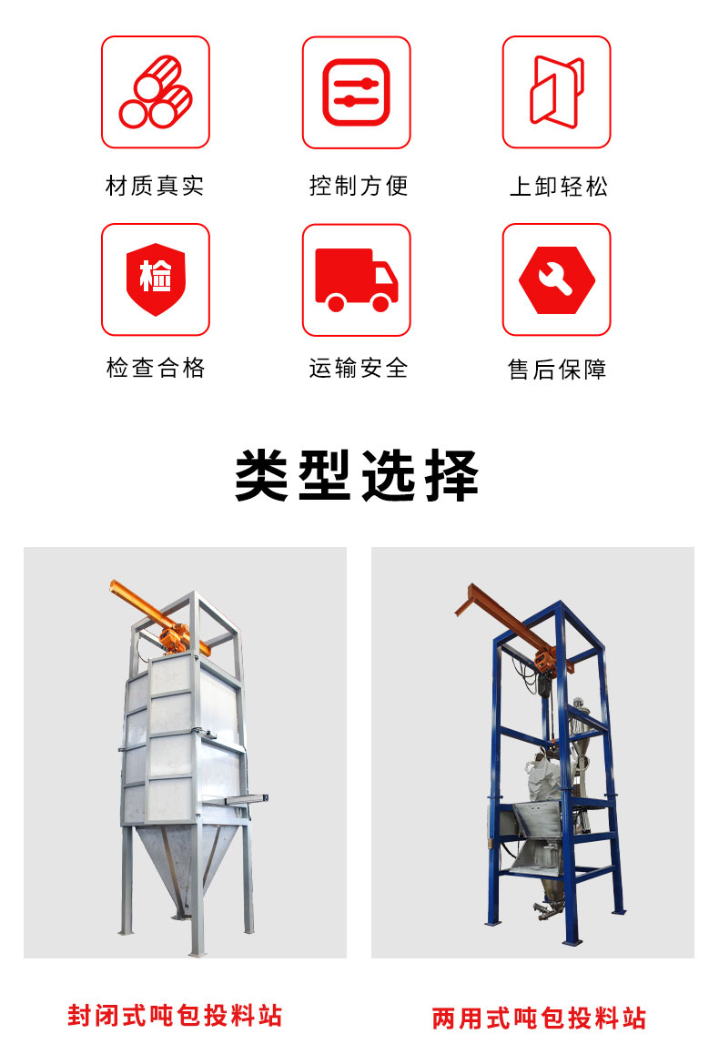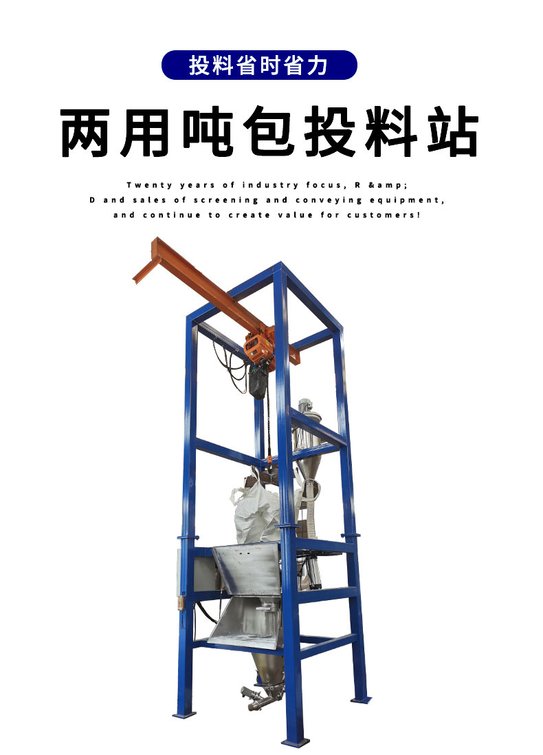 【物料要求】:粉末顆粒物料 【產品簡述】:噸包投料站解決了噸包物料在投料過程中有粉塵飛揚的現象,使用收塵裝置,解決粉塵飛揚...